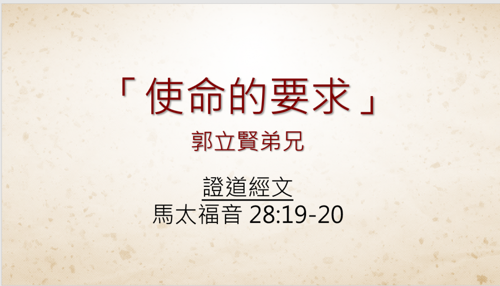 03/03/2024 國語堂崇拜 : 主說:來跟從我! 講道: 何 進 牧 師 經文:馬可福音 1:14-20