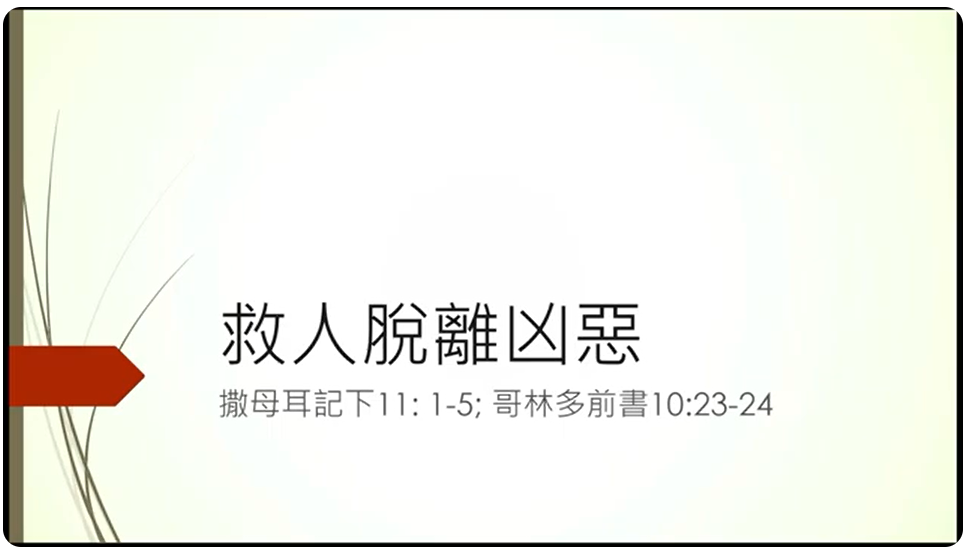 6/9/2024 粵語崇拜: 救人一命 講者: 譚詠詩傳道 證道經文: 撒母耳記上25:23-35