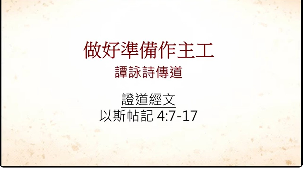 10/13/2024 國語堂崇拜: 神呼召的僕人 講員:譚詠詩傳道 經文:列王紀下 22:14-20