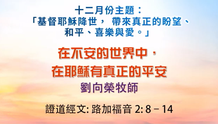 2025年12月7日 粵語堂聖餐主日崇拜 証道題目:在不安的世界中,在耶穌𥚃有真正的平安 講員:劉向榮牧師 証道經文:路加福音 2:10–14