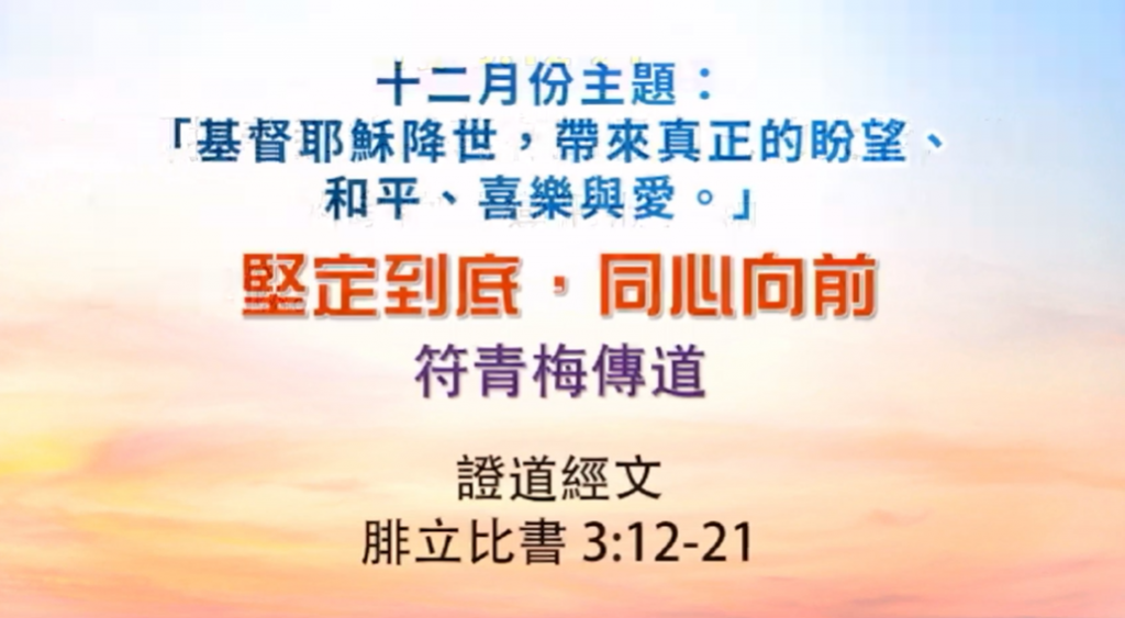 2025年12月28日 粵語堂主日崇拜 証道題目:堅定到底,同心向前 講員:符青梅傳道 証道經文:腓立比書 3:12-21